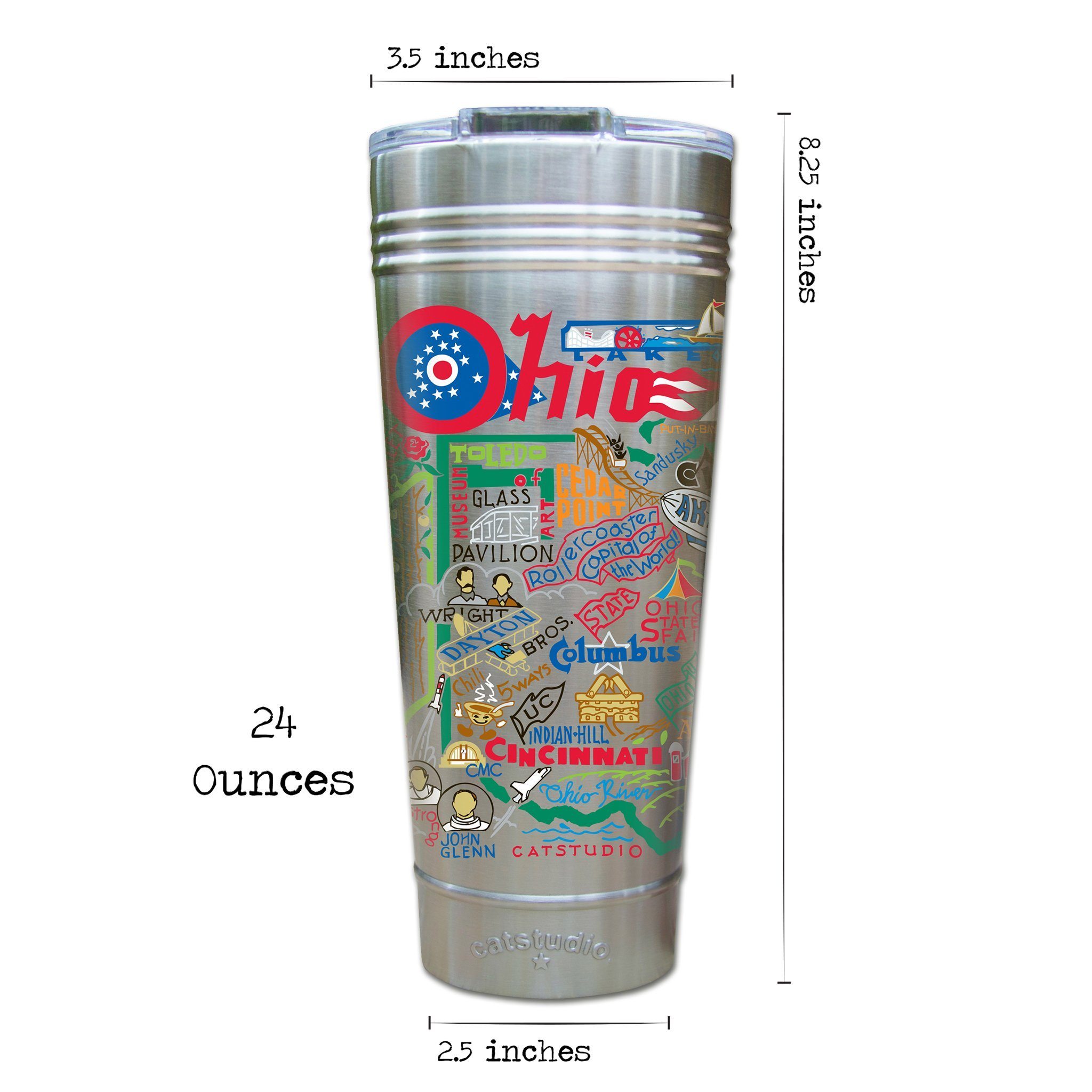 From the Ohio River to Lake Erie - this original design celebrates the State of Ohio!Our original art is now available to bring along on all your on-the-go adventures. This triple-walled 24 ounce thermal tumbler amazingly keeps beverages HOT for 4 hours and COLD for 6 hours. Add ice for up to 12 hours of cool sipping! Features a thoughtfully-engineered magnetic closure and a non-slip bottom to prevent spills and wet marks on surfaces. Innovation at its finest. Yippee!