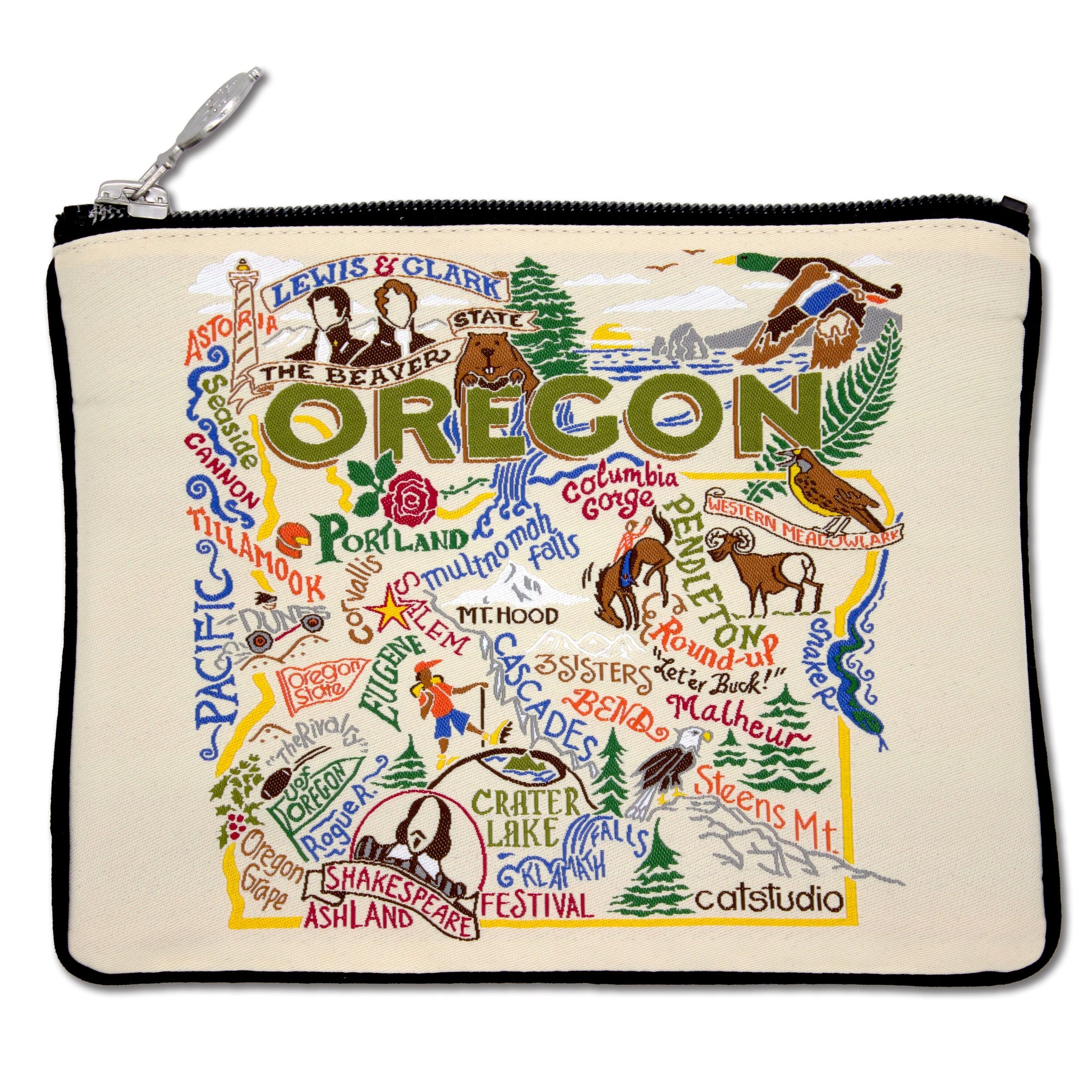 Wow! From the Rogue River to Round-Up to the Columbia River Crater Lake - this original design celebrates the beautiful State of Oregon! Go Ducks! Go Beavers!