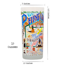 Our original design is amazingly rendered using organic inks of unlimited vibrant colors plus silver and gold. The high quality 15-ounce frosted glass is dishwasher safe. Cheers and bottoms up!