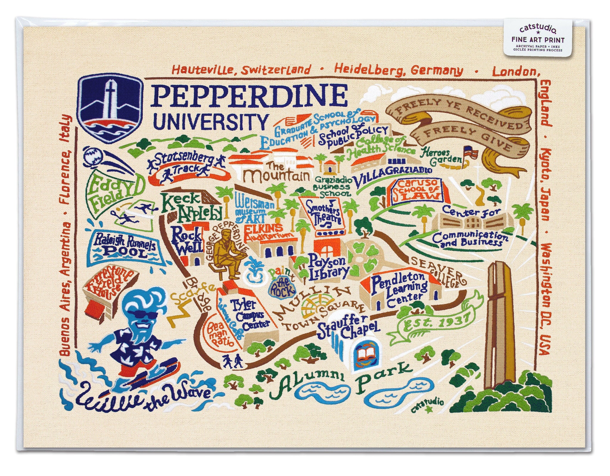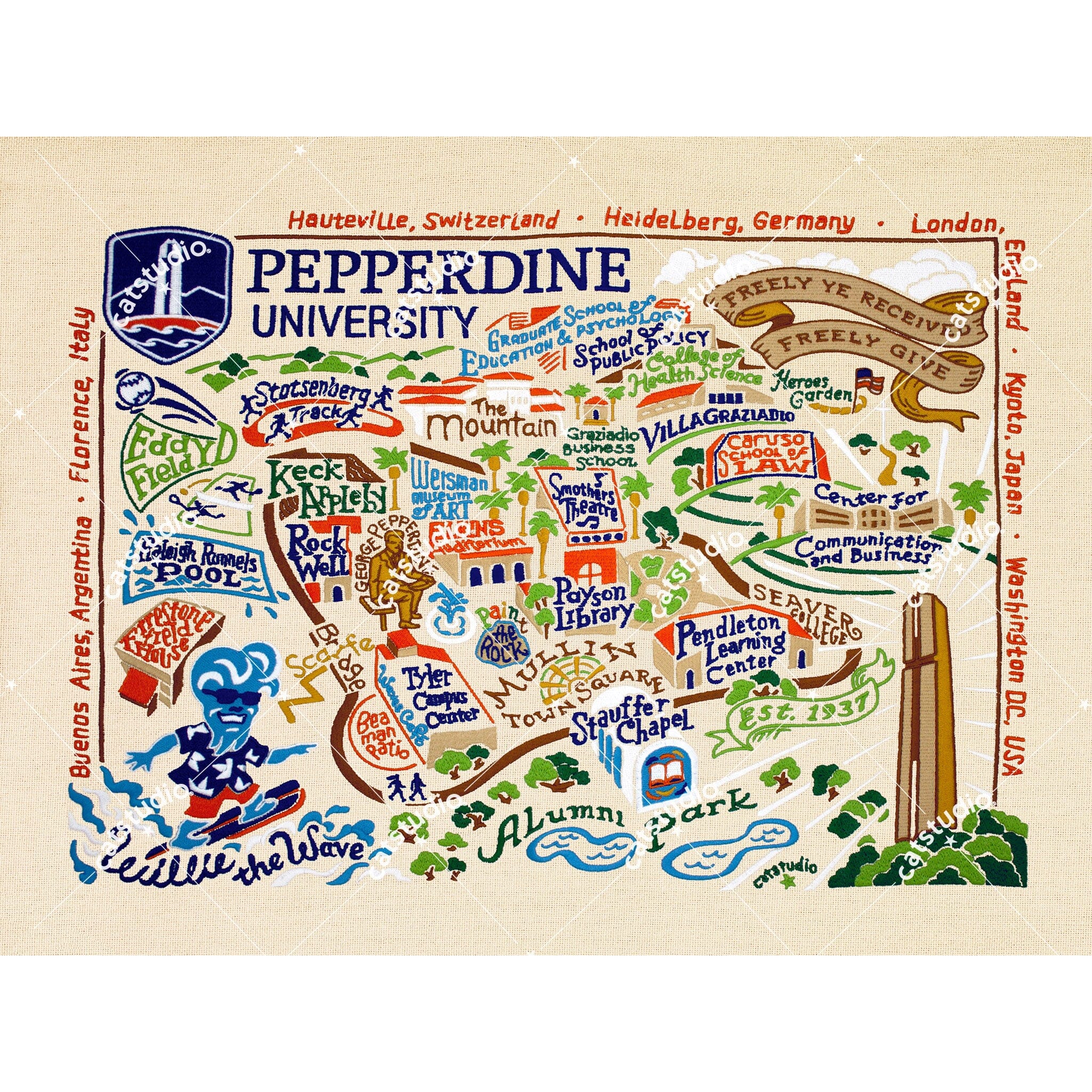 This original design celebrates Pepperdine University, go Waves!