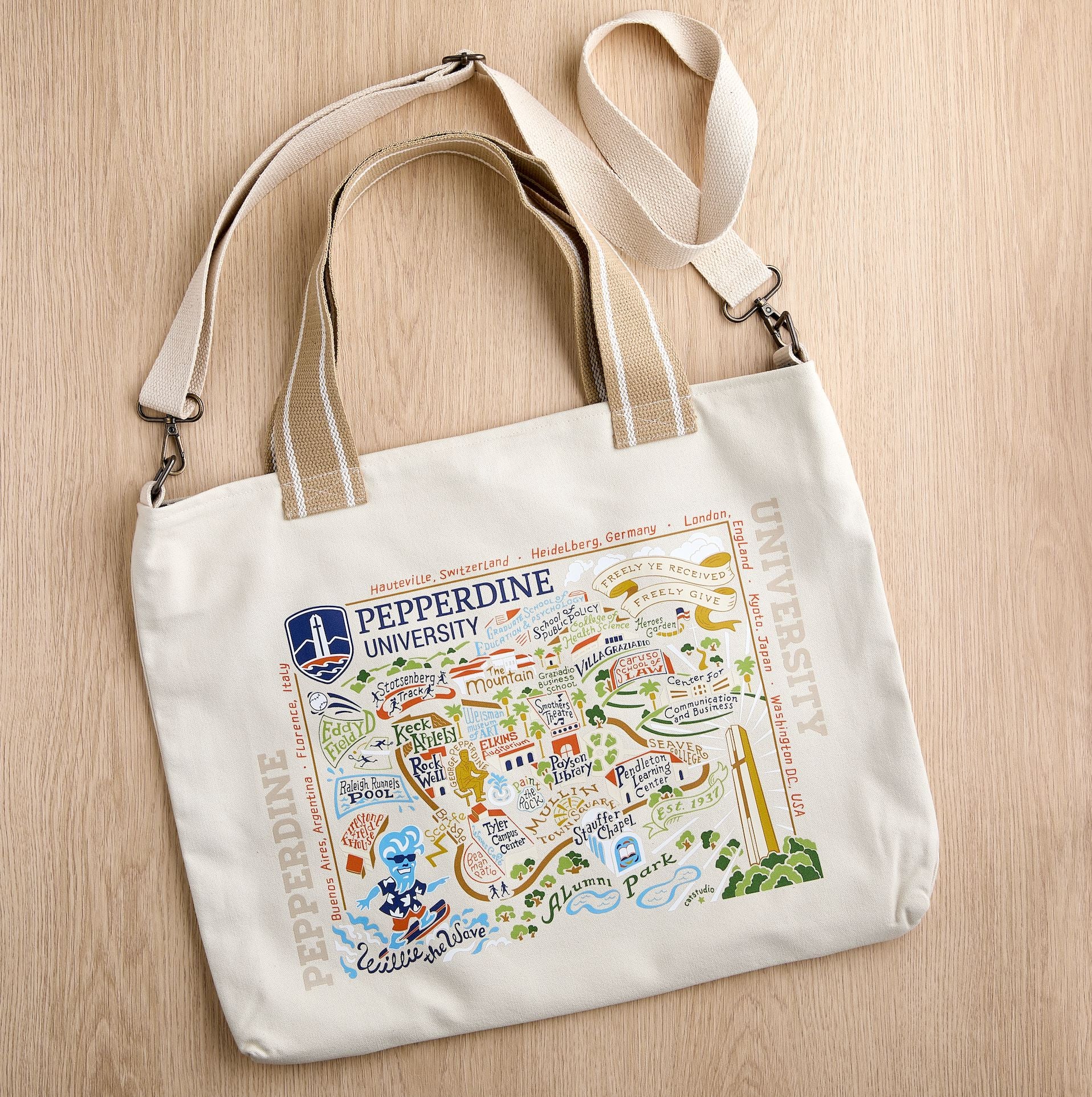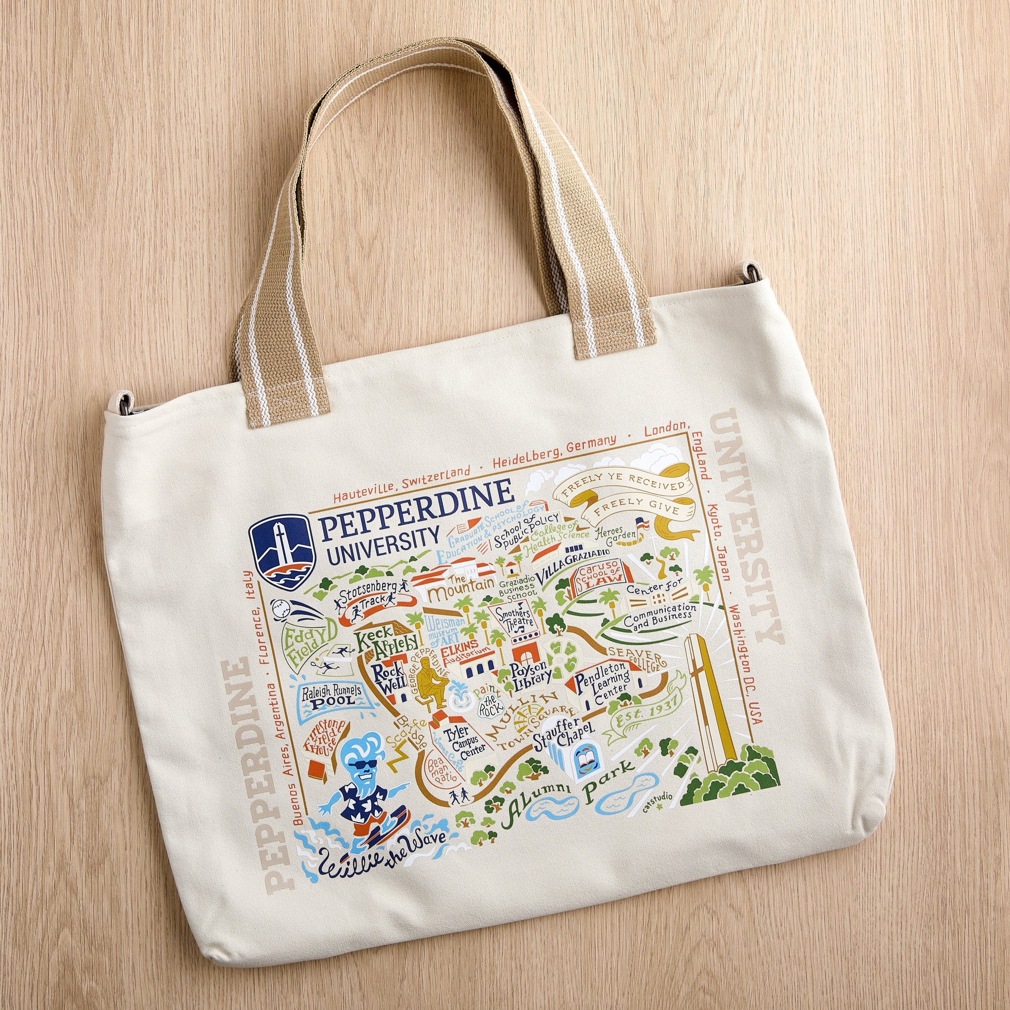 This original design celebrates Pepperdine University, go Waves!