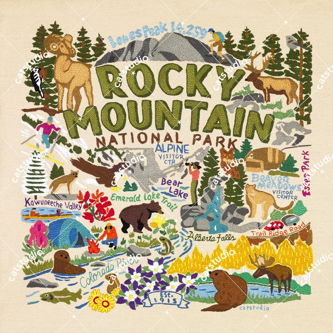 This original design celebrates the beauty and splendor of Rocky Mountain National Park.