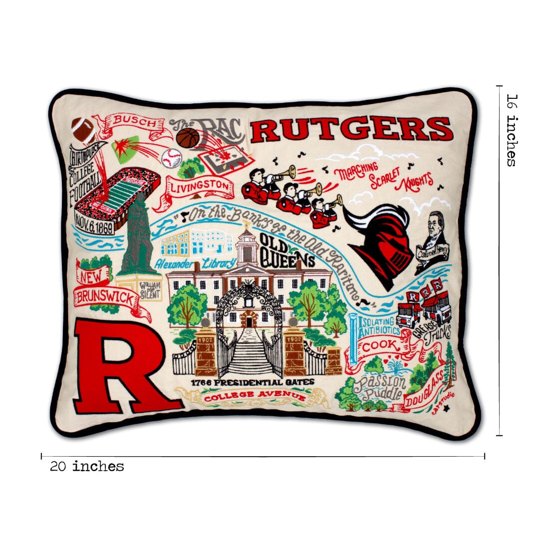 This pillow is embroidered with our original and licensed art. Created on tea-colored background, accented with black piping, and finished with a zipper closure. 16x20 inches.