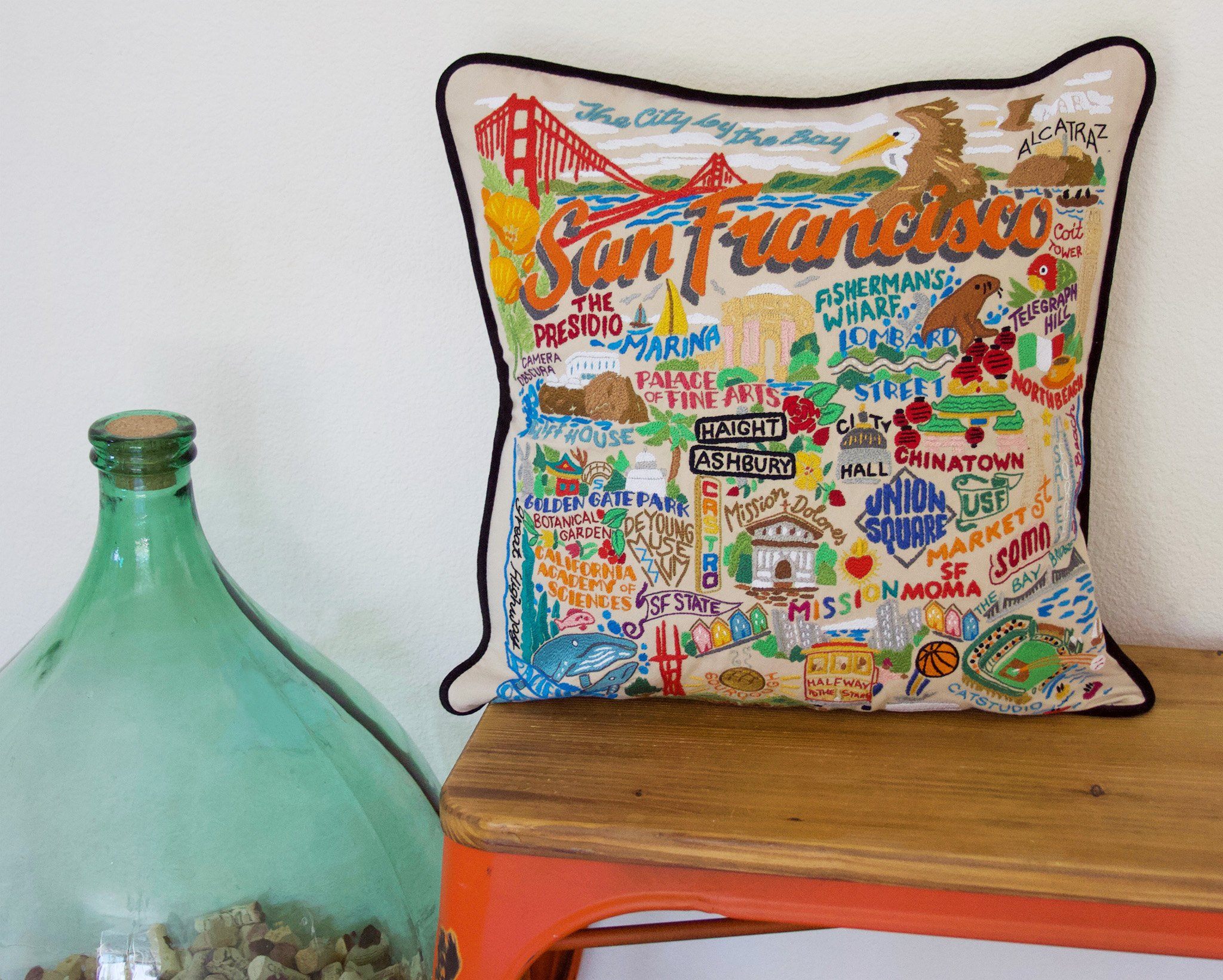 Geography Hand-Embroidered Pillows