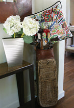 This pillow is entirely EMBROIDERED by HAND on 100% Organic Cotton. Amazingly, it can take up to one week to embroider one pillow! It is also unique in nature since each artisan incorporates a certain flair to their work, and every piece is signed on the tag. Created on tea-colored background, accented with black velvet piping, and finished with a 3-button closure. 20 x 20 inches.