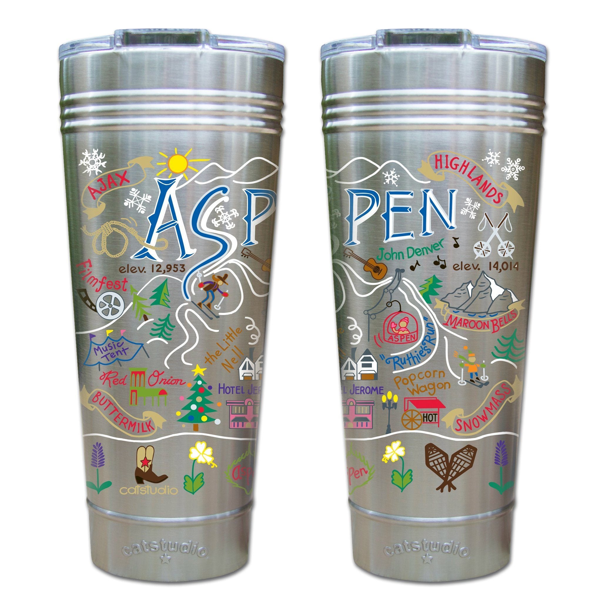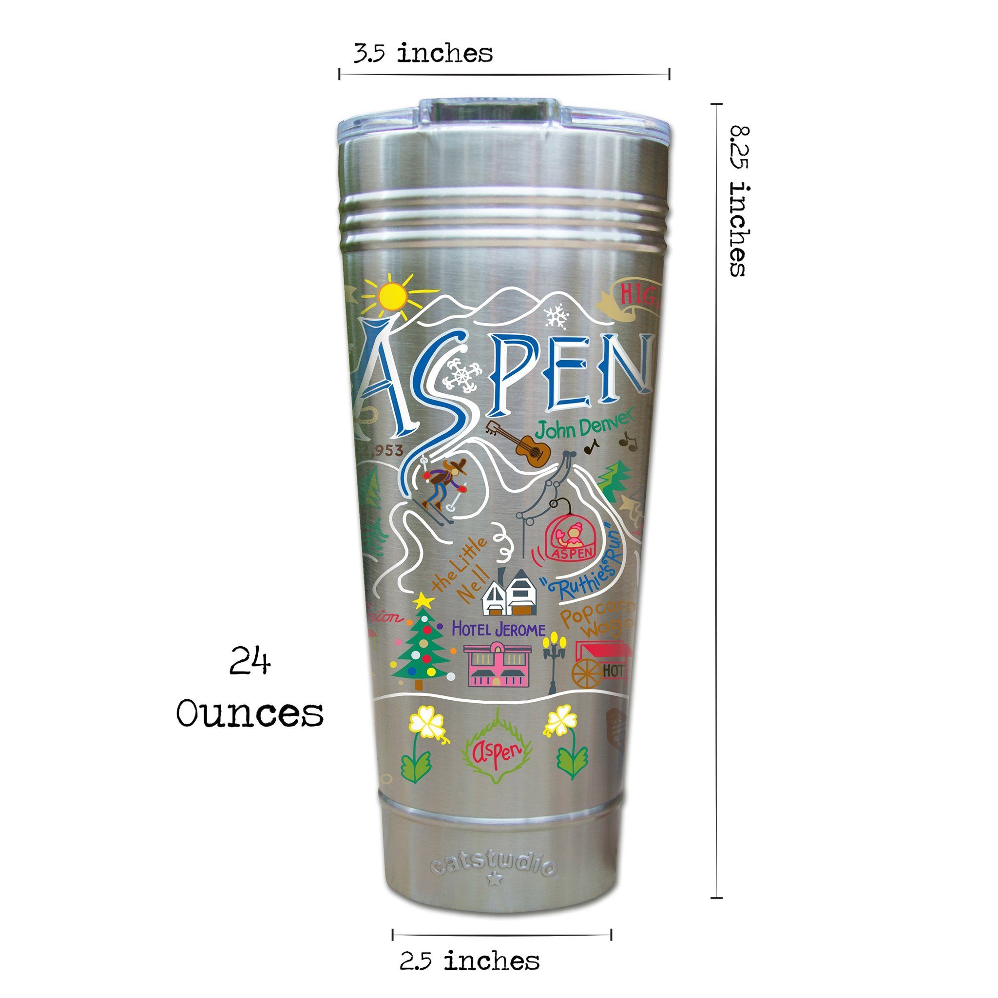 Let's go SKIING in Aspen's Powder!!! This original design celebrates Skiing in the beautiful Aspen area.Our original art is now available to bring along on all your on-the-go adventures. This triple-walled 24 ounce thermal tumbler amazingly keeps beverages HOT for 4 hours and COLD for 6 hours. Add ice for up to 12 hours of cool sipping! Features a thoughtfully-engineered magnetic closure and a non-slip bottom to prevent spills and wet marks on surfaces. Innovation at its finest. Yippee!