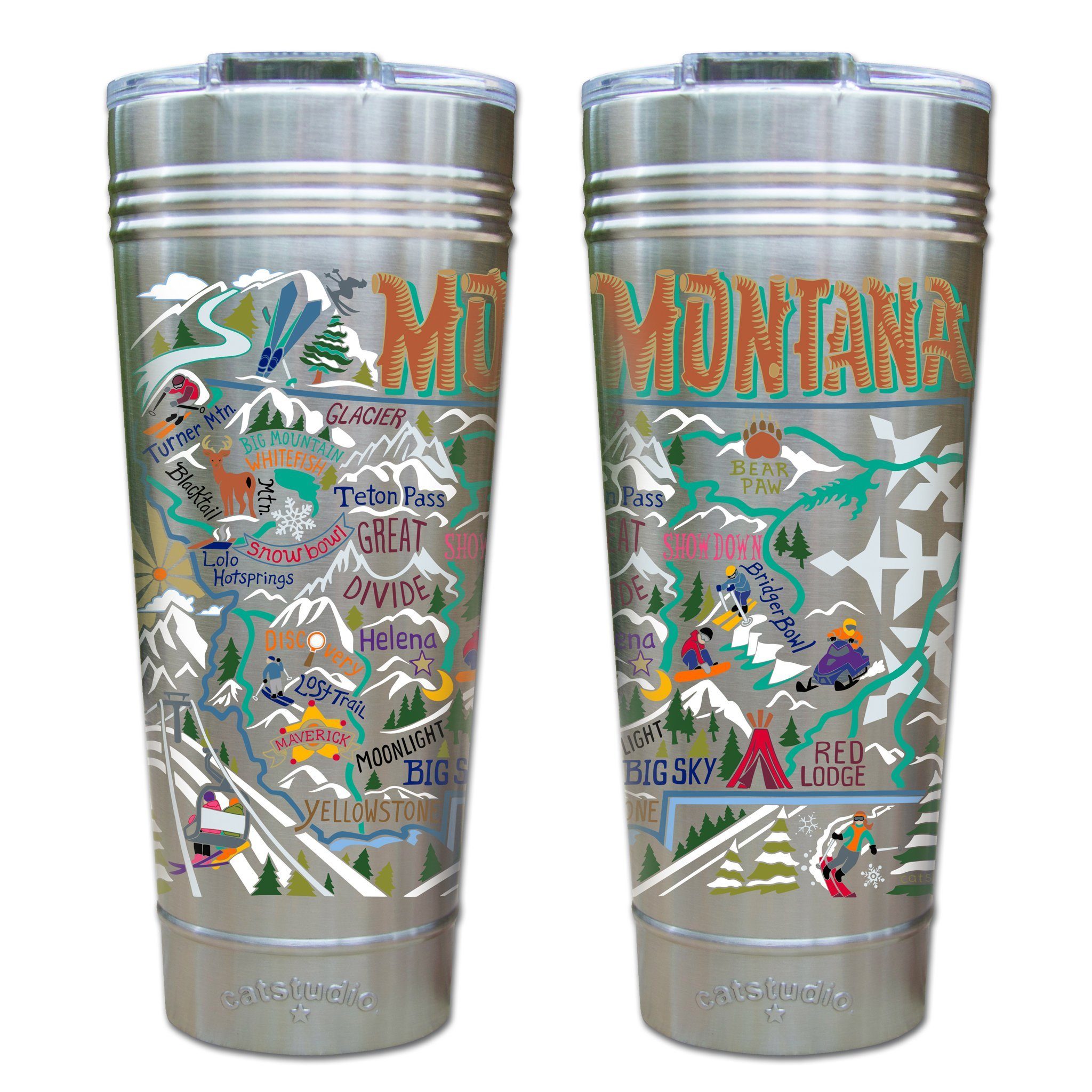 Let's go SKIING in Montana's Powder!!! This original design celebrates Skiing in the beautiful State of Montana.Our original art is now available to bring along on all your on-the-go adventures. This triple-walled 24 ounce thermal tumbler amazingly keeps beverages HOT for 4 hours and COLD for 6 hours. Add ice for up to 12 hours of cool sipping! Features a thoughtfully-engineered magnetic closure and a non-slip bottom to prevent spills and wet marks on surfaces. Innovation at its finest. Yippee!