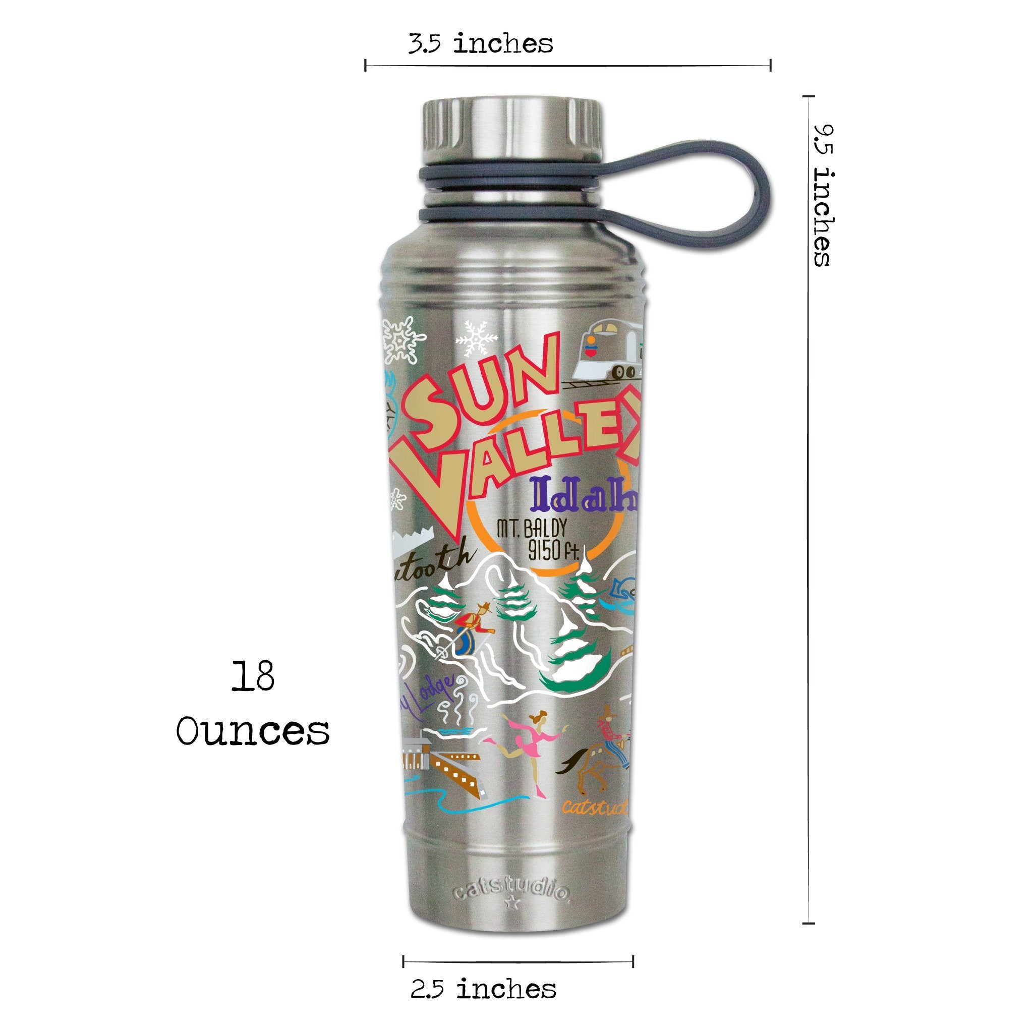 Our original art is now available to bring along on all of your on-the-go adventures. This triple-walled 18 ounce thermal bottle amazingly keeps beverages cold for 24 hours and hot for 12 hours. Thoughtfully engineered with a balanced swing top lid that keeps liquids secure AND stays put while you sip. Cap loop means your lid stays attached to the bottle plus provides easy carry, while the non-slip bottom prevents spills and wet marks on surfaces. Innovation at its finest. Yippee!