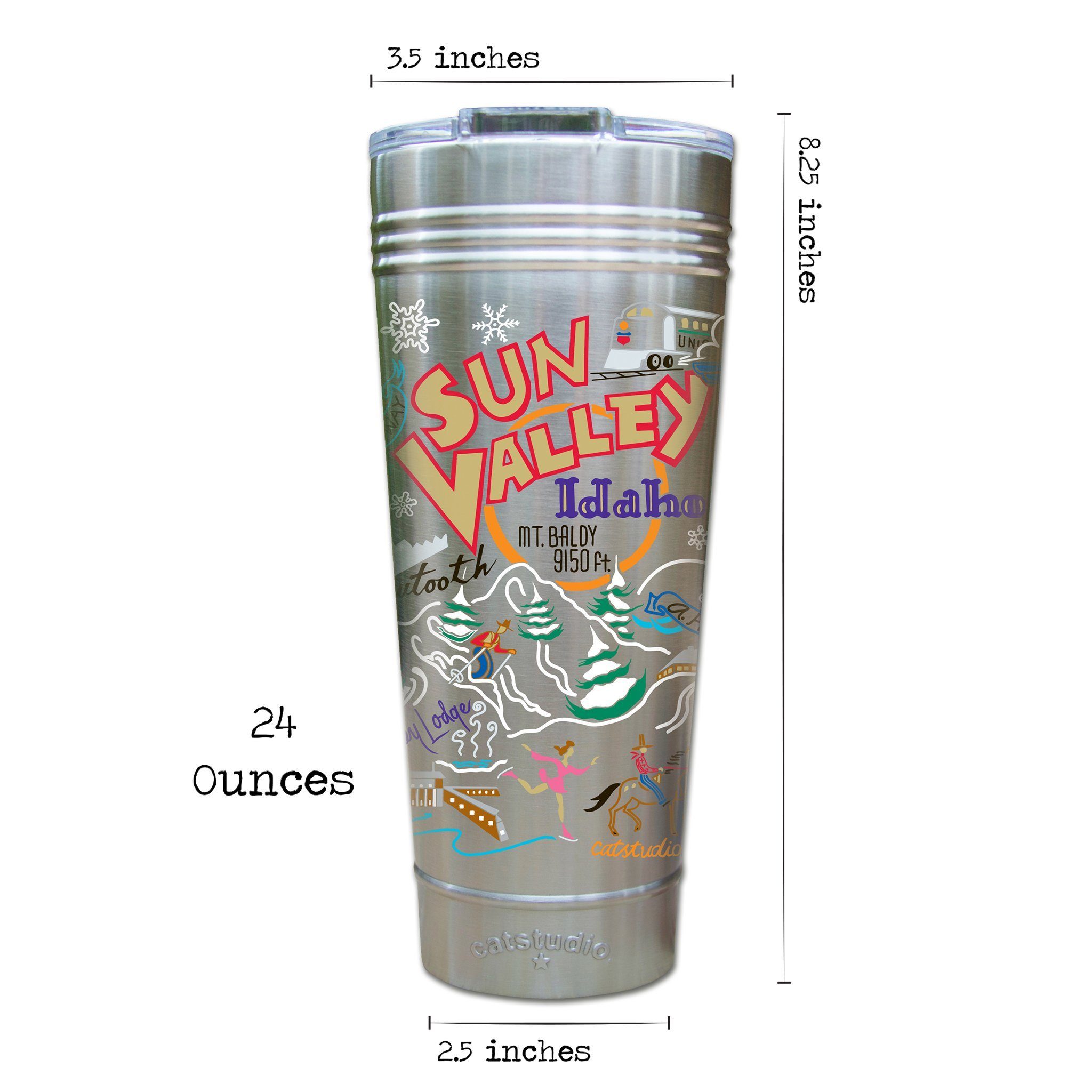 Let's go SKIING in Sun Valley's Powder!!! This original design celebrates Skiing in the beautiful Sun Valley area.Our original art is now available to bring along on all your on-the-go adventures. This triple-walled 24 ounce thermal tumbler amazingly keeps beverages HOT for 4 hours and COLD for 6 hours. Add ice for up to 12 hours of cool sipping! Features a thoughtfully-engineered magnetic closure and a non-slip bottom to prevent spills and wet marks on surfaces. Innovation at its finest. Yippee!