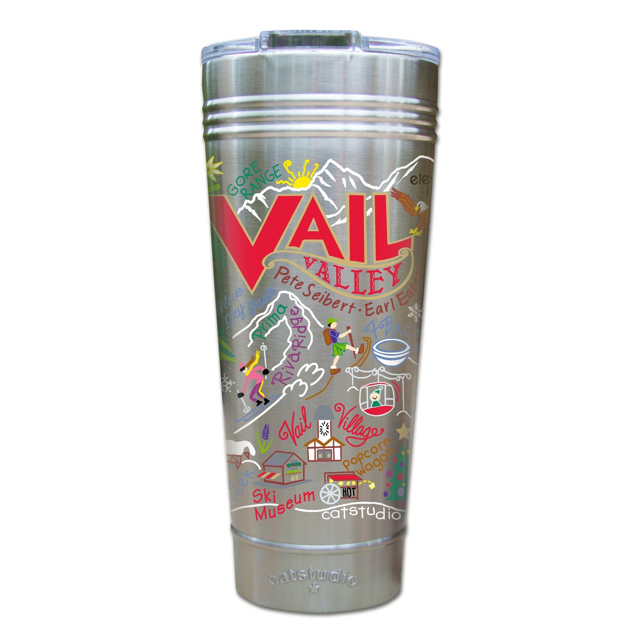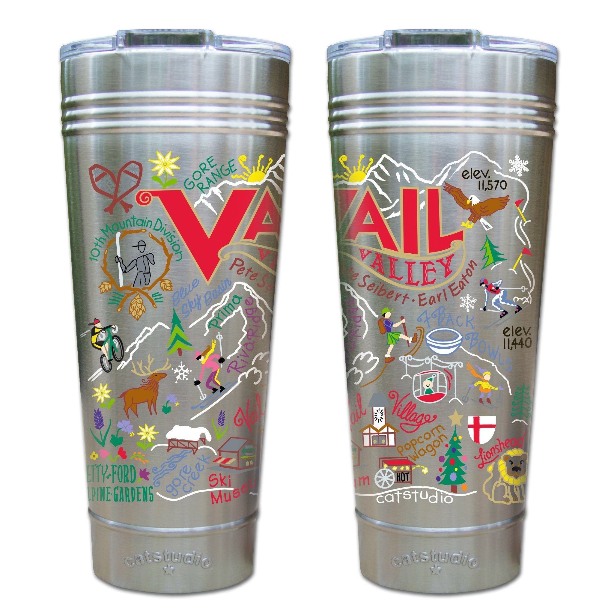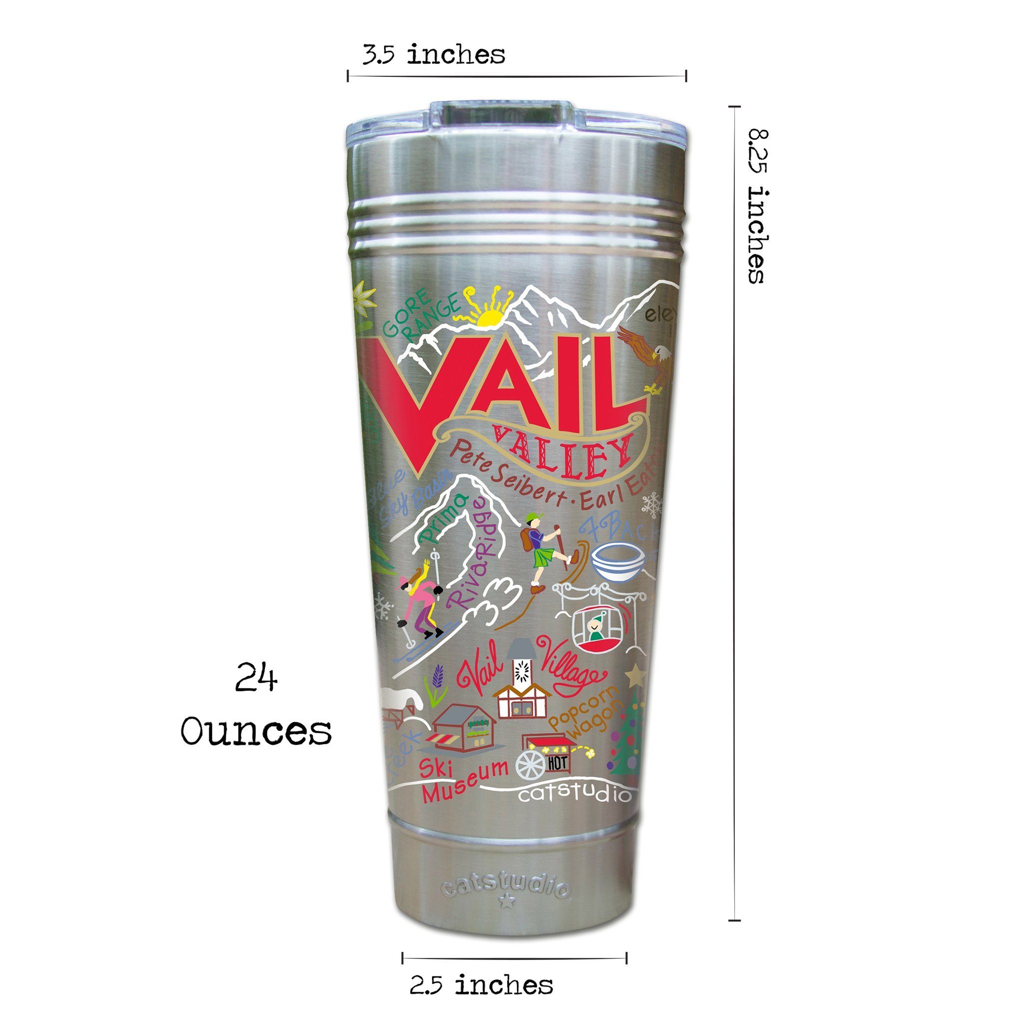 Let's go SKIING in Vail's Powder!!! This original design celebrates Skiing in the beautiful Vail area.Our original art is now available to bring along on all your on-the-go adventures. This triple-walled 24 ounce thermal tumbler amazingly keeps beverages HOT for 4 hours and COLD for 6 hours. Add ice for up to 12 hours of cool sipping! Features a thoughtfully-engineered magnetic closure and a non-slip bottom to prevent spills and wet marks on surfaces. Innovation at its finest. Yippee!