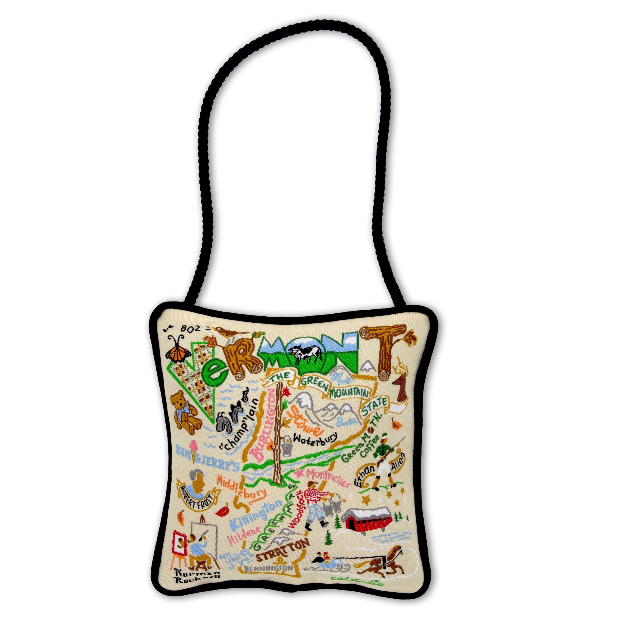 The Green Mountain State...This design embodies Vermont’s serene beauty, with its rolling mountains and fall foliage, featured on a Mini Pillow Ornament.