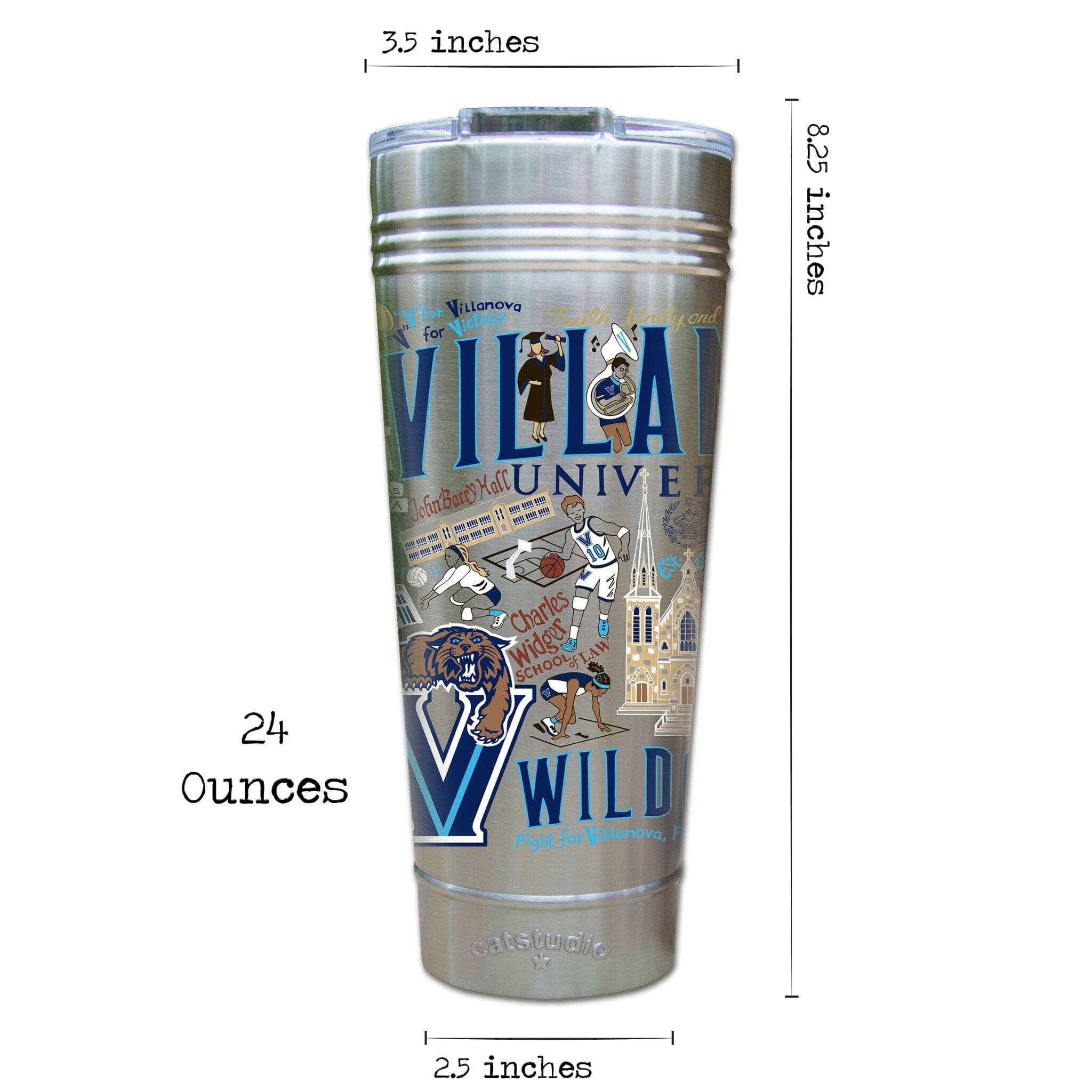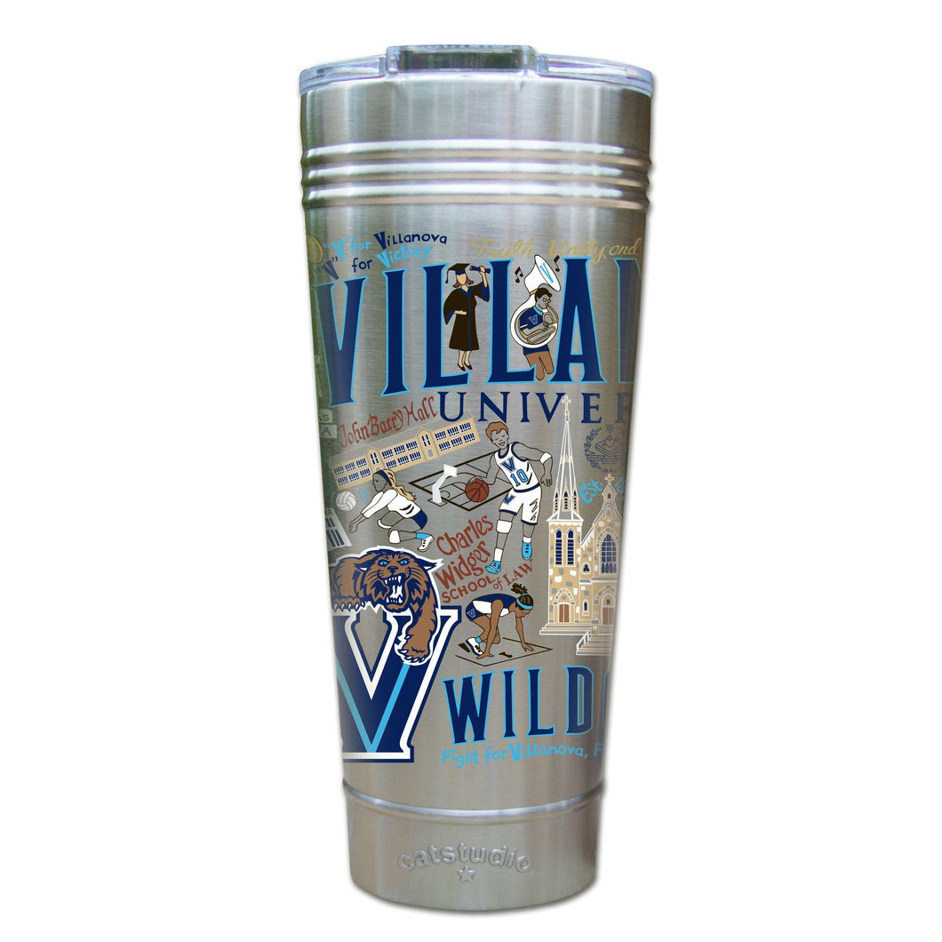This original design celebrates Villanova University. Go Wildcats!Our original art is now available to bring along on all your on-the-go adventures. This triple-walled 24 ounce thermal tumbler amazingly keeps beverages HOT for 4 hours and COLD for 6 hours. Add ice for up to 12 hours of cool sipping! Features a thoughtfully-engineered magnetic closure and a non-slip bottom to prevent spills and wet marks on surfaces. Innovation at its finest. Yippee!