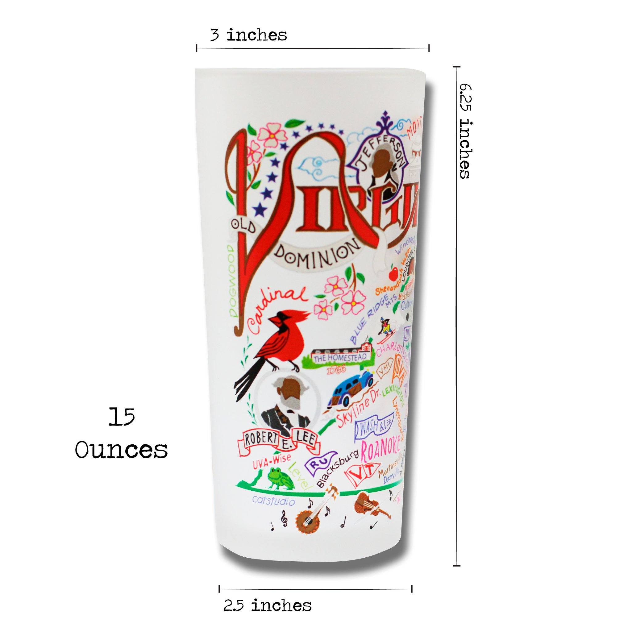 Our original design is amazingly rendered using organic inks of unlimited vibrant colors plus silver and gold. The high quality 15-ounce frosted glass is dishwasher safe. Cheers and bottoms up!