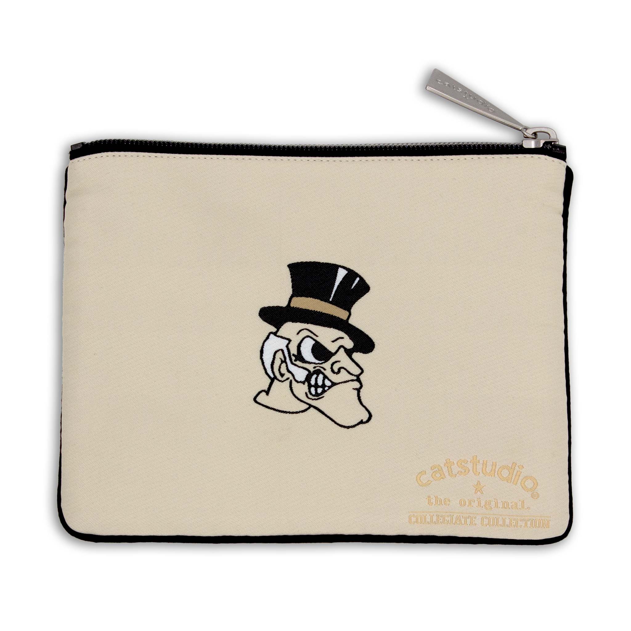 Our original design is uniquely woven (not printed!) into a handy-sized zip pouch - perfect for toting your keys, cash & credit cards, cosmetics - all your small necessities! Complete with chic zipper and pull, and our signature Collegiate black lining. Conveniently sized at 5x7 inches.