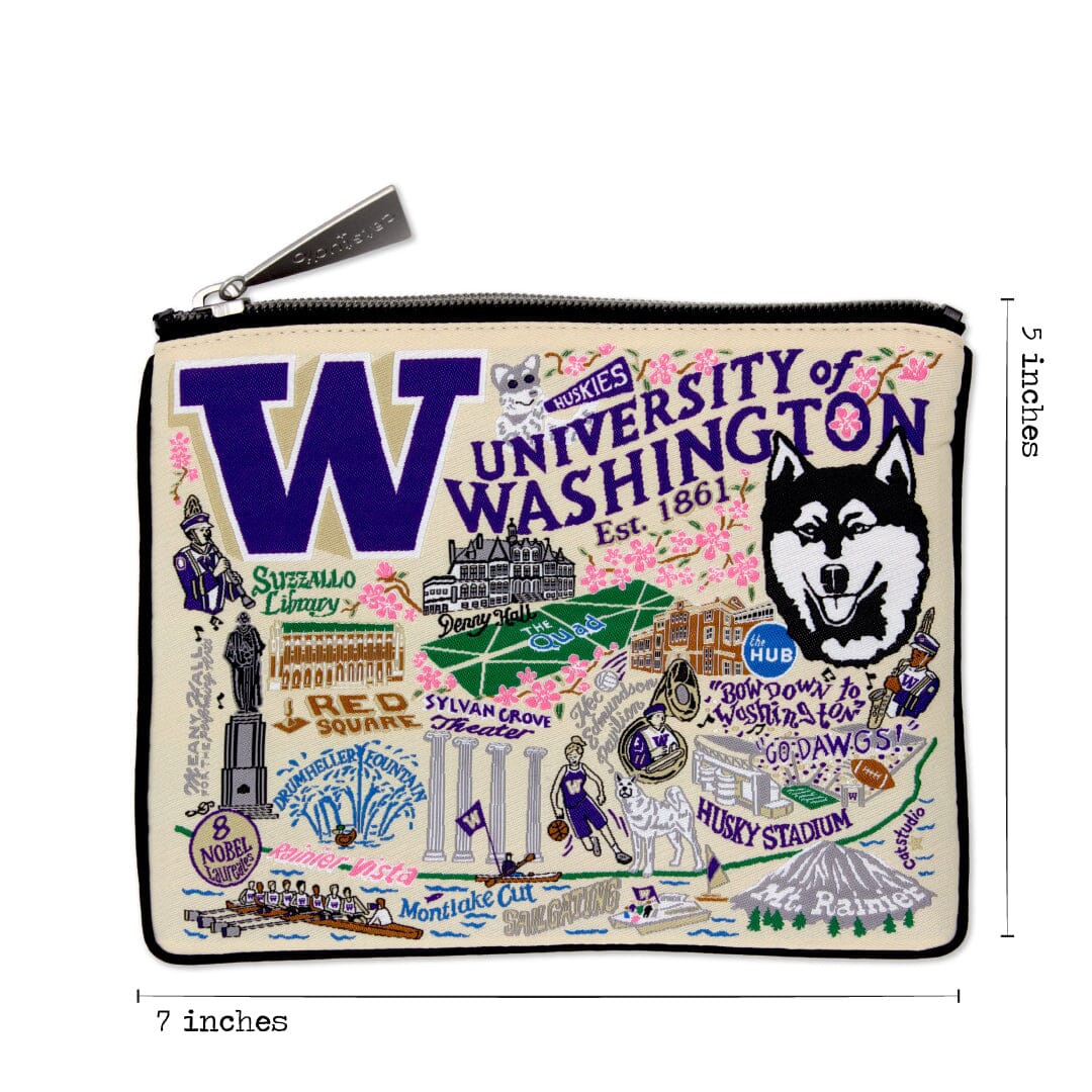 Our original design is uniquely woven (not printed!) into a handy-sized zip pouch - perfect for toting your keys, cash & credit cards, cosmetics - all your small necessities! Complete with chic zipper and pull, and our signature Collegiate black lining. Conveniently sized at 5x7 inches.