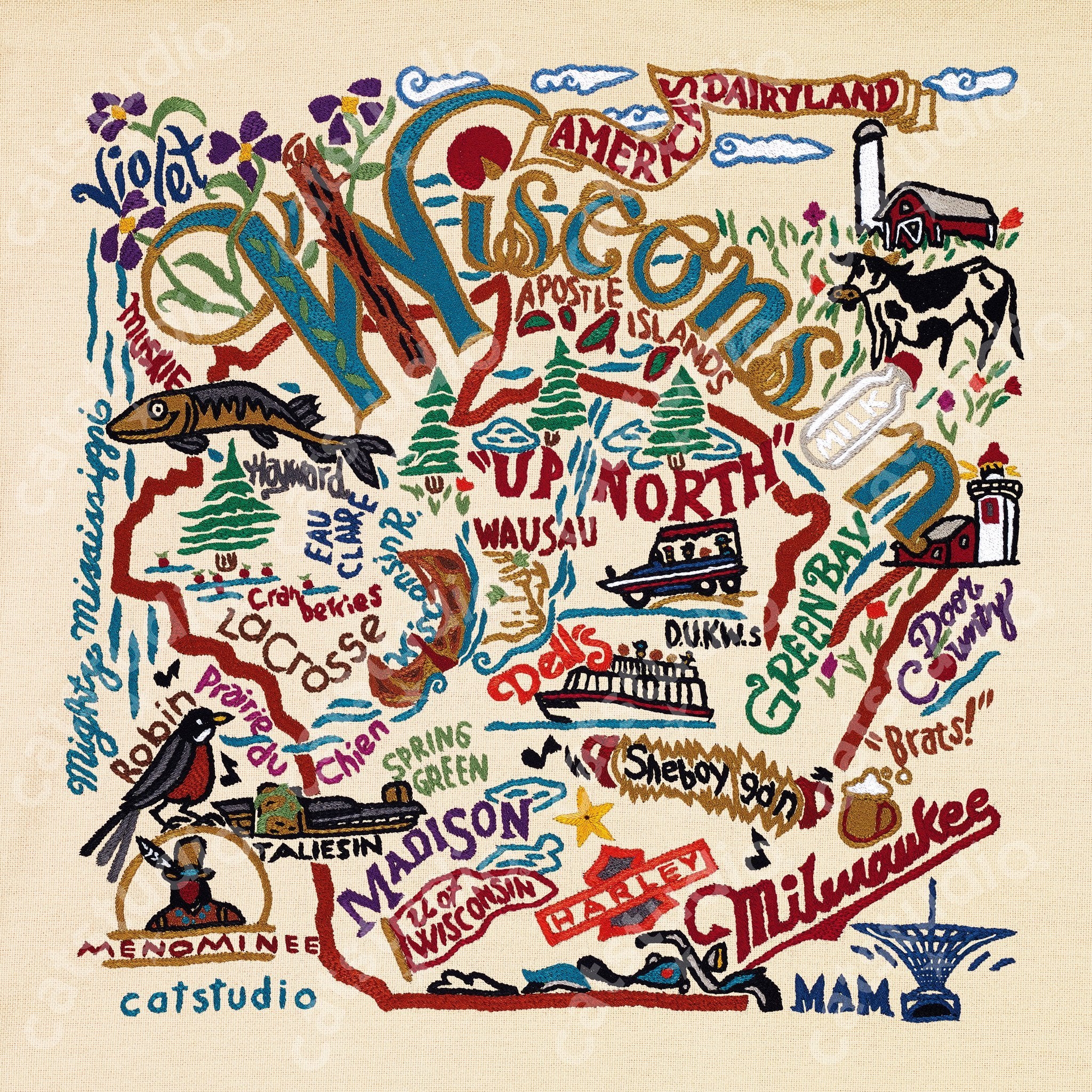 From the Mississippi River to Lake Superior and Lake Michigan, this original design celebrates the beautiful state of Wisconsin!
