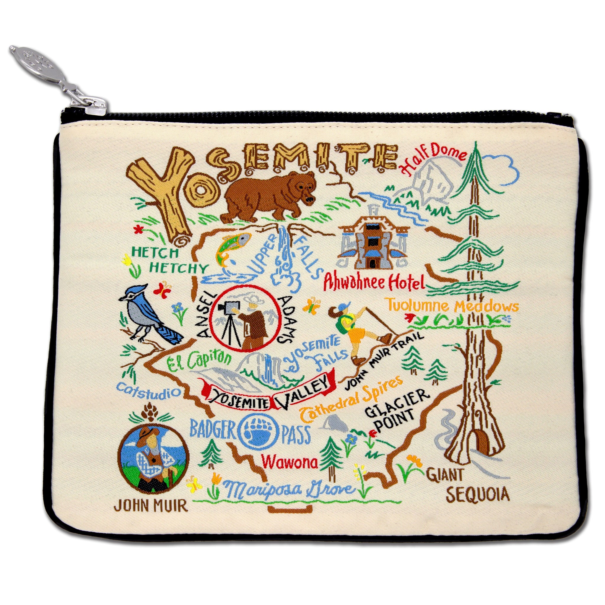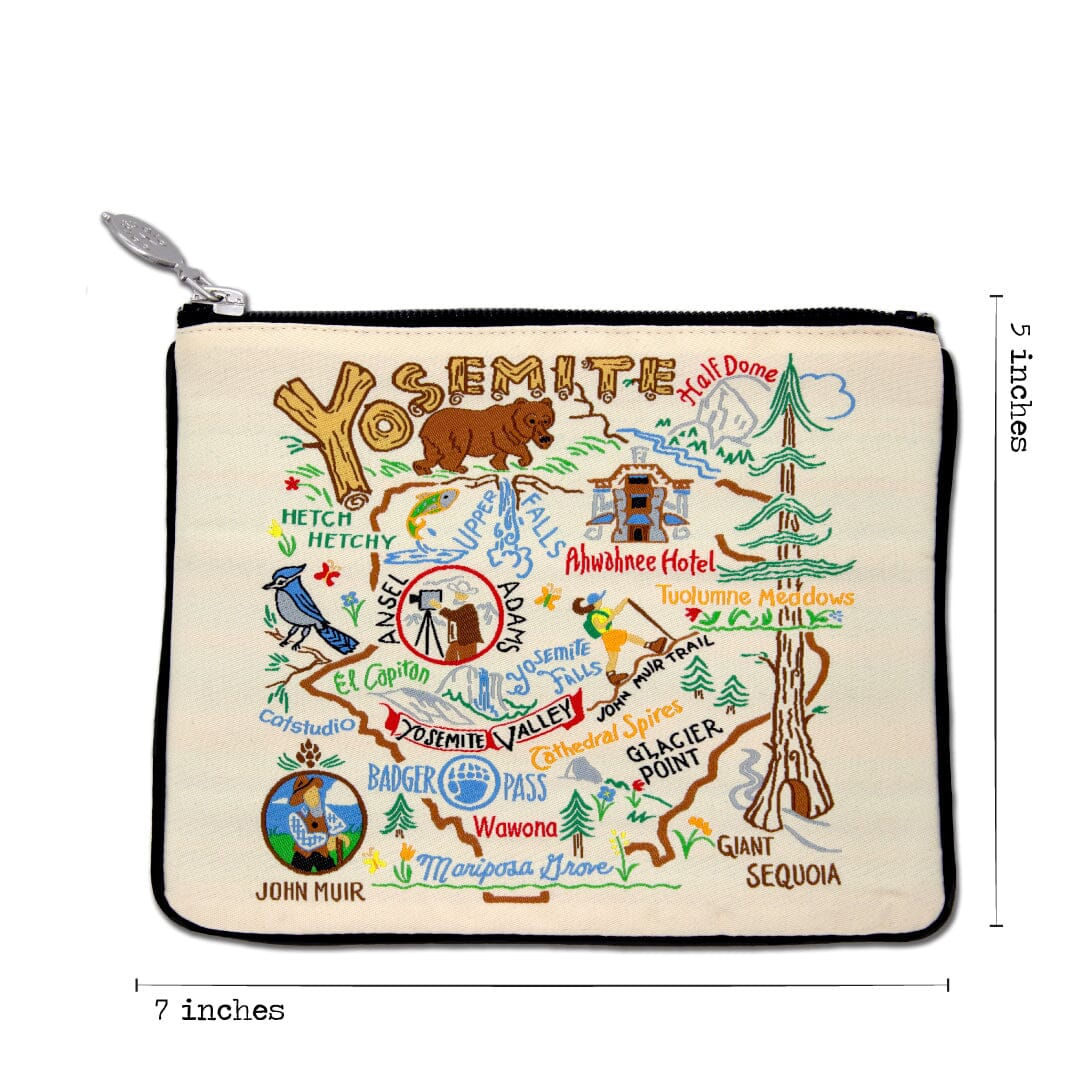 This original design celebrates the beauty and splendor of Yosemite National Park.Our original design is uniquely woven (not printed!) into a handy-sized zip pouch - perfect for toting your keys, cash & credit cards, cosmetics - all your small necessities! Complete with chic zipper and pull, and our signature Geo black lining. Conveniently sized at 5x7 inches.